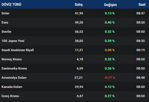 Parite, üst üste dördüncü işlem gününde de yükselişini sürdürerek şu anda yüzde 0,25 primle 41,9470 seviyesinde işlem görüyor.