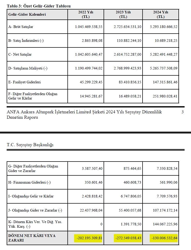 Mali tabloya göre ANFA’nın, son üç yıllık zararı 500 milyon TL’yi aştı. 2022-2024 yıllarına ilişkin zarar tablosu şöyle sıralandı: