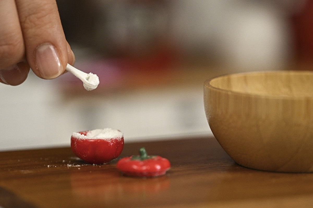 Mini tahtalarda sebzeleri doğrayıp, hamurunu küçük oklavayla açan Ünveren; pizzadan makaron ve kruvasana, mantıdan Kayseri yağlamasına kadar birçok lezzeti tek lokmalık sunumlara dönüştürüyor. Küçük şişelerde kurulan turşular ve reçeller de minyatür sofraların tamamlayıcısı oluyor.