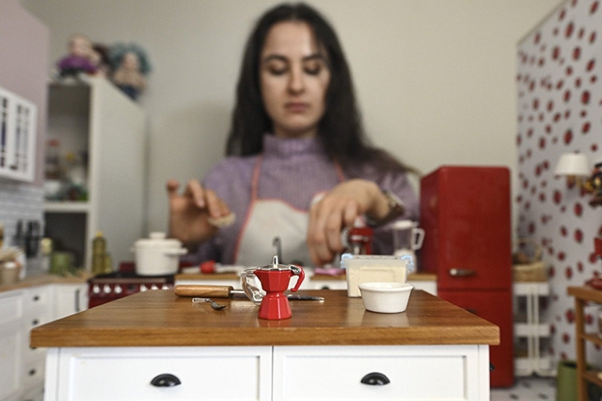 Sosyal medya içerikleri ve mutfak çalışmalarında ablasına destek veren 25 yaşındaki Burcu Ünveren ise minyatür mutfakta üretimin göründüğünden çok daha zahmetli olduğunu anlattı.